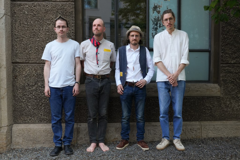 Als Mondegg verbindet Simon Deckert Literatur und Musik, Folksongs mit Volksliedern und Pop. Er singt vor allem auf Hochdeutsch und spielt dazu Klavier oder Gitarre – seit 2024 zusammen mit Mathias Schmid (E-Bass), Lucien Palser (Klavier) und Simon Hotz (Akkordeon). „Hier entlang mit reinem Herzen“, das erste Album von Mondegg, erschien im Oktober 2025. (Foto: Stephan Zbinden)